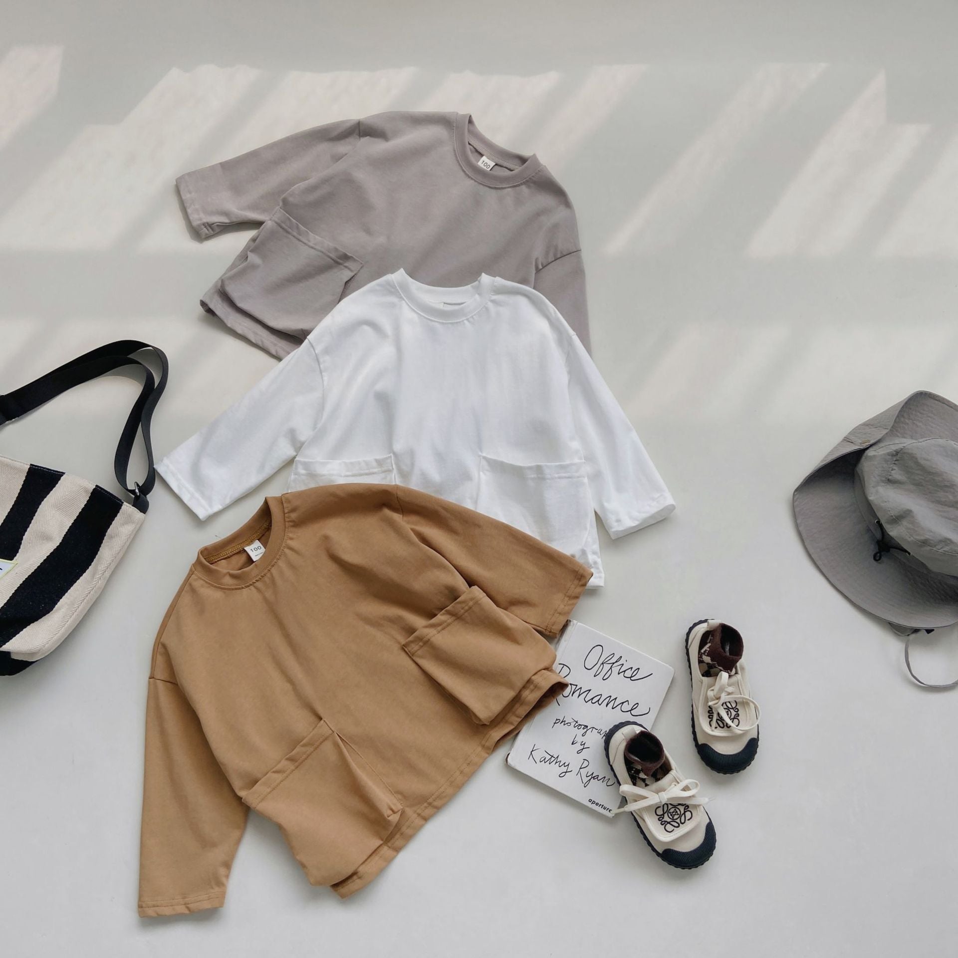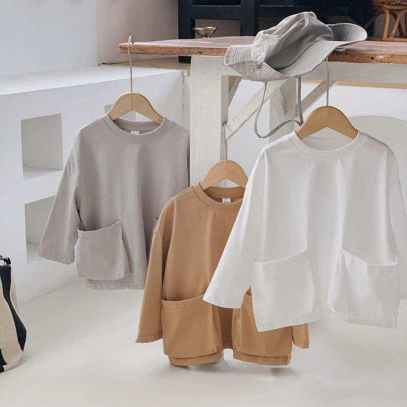 Herbst Ankunft Baby Kinder Unisex Bequeme Einfarbige Taschen Langarm Top