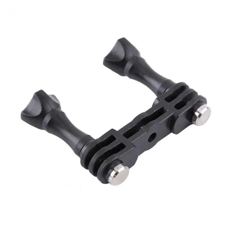 Med denna adapter kan du fäste två kameror, ex. ovanför varandra eller en åt varje håll, eller nått annat tillbehör tillsammans med din kamera, ex. mic, belysning osv. Adaptern fäster du på selfiepinne, stativ eller dyl med standard GoPro-fäste och får sedan 2 nya GoPro-fästen att montera din utrustning på. Perfekt när man behöver placera belysning ovanför/under kameran eller vill filma åt olika håll samtidigt. Medföljer 2st låsskruv.