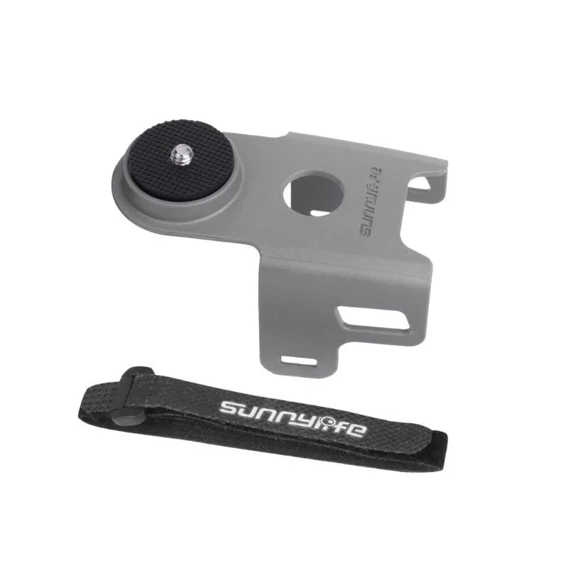 På ramen sitter det en skruv med 1/4" standardgänga för kamera. På denna kan du sedan fästa valfri kamera, belysning, GPS-tracker eller annat tillbehör som du vill att Mavic Air 2 ska bära med sig.