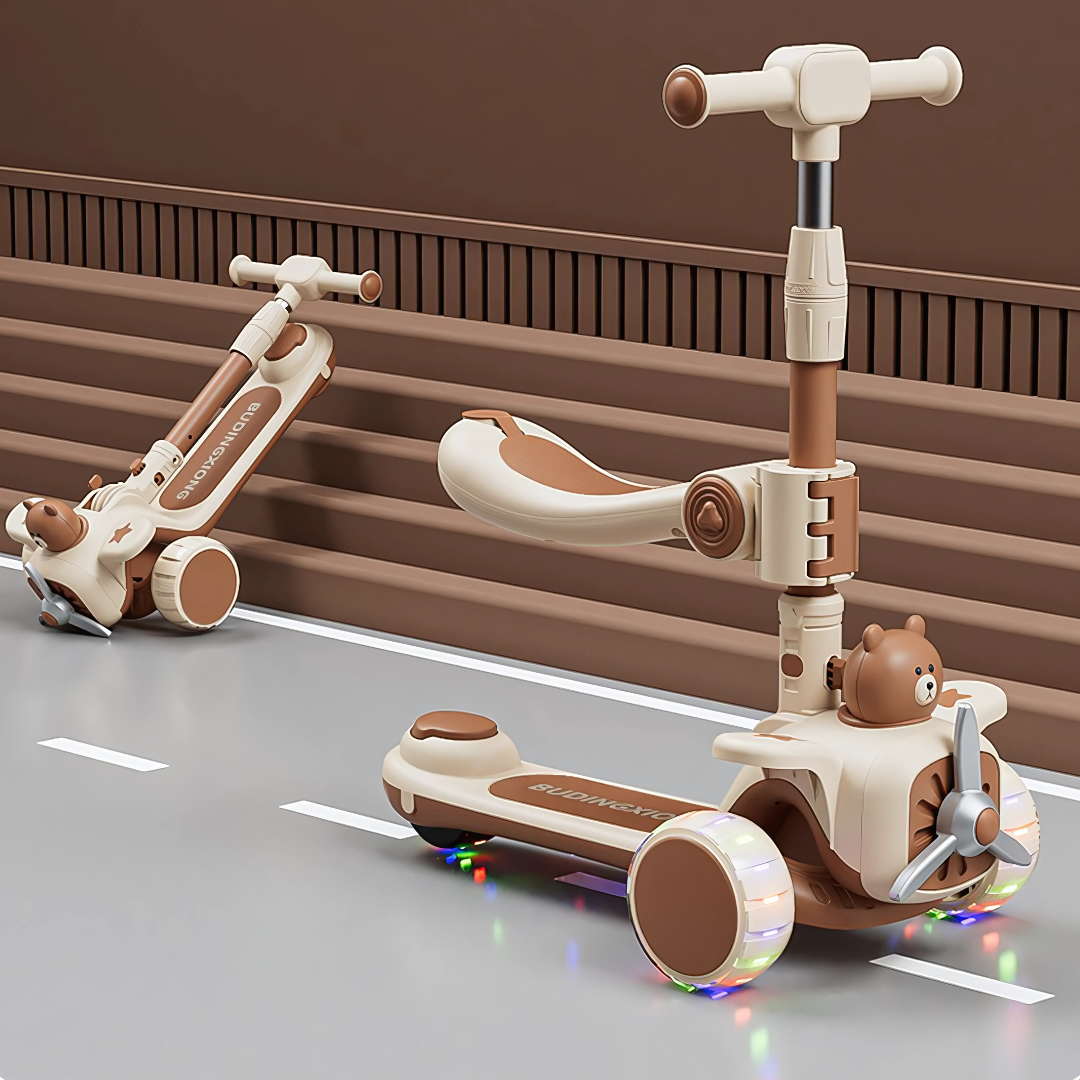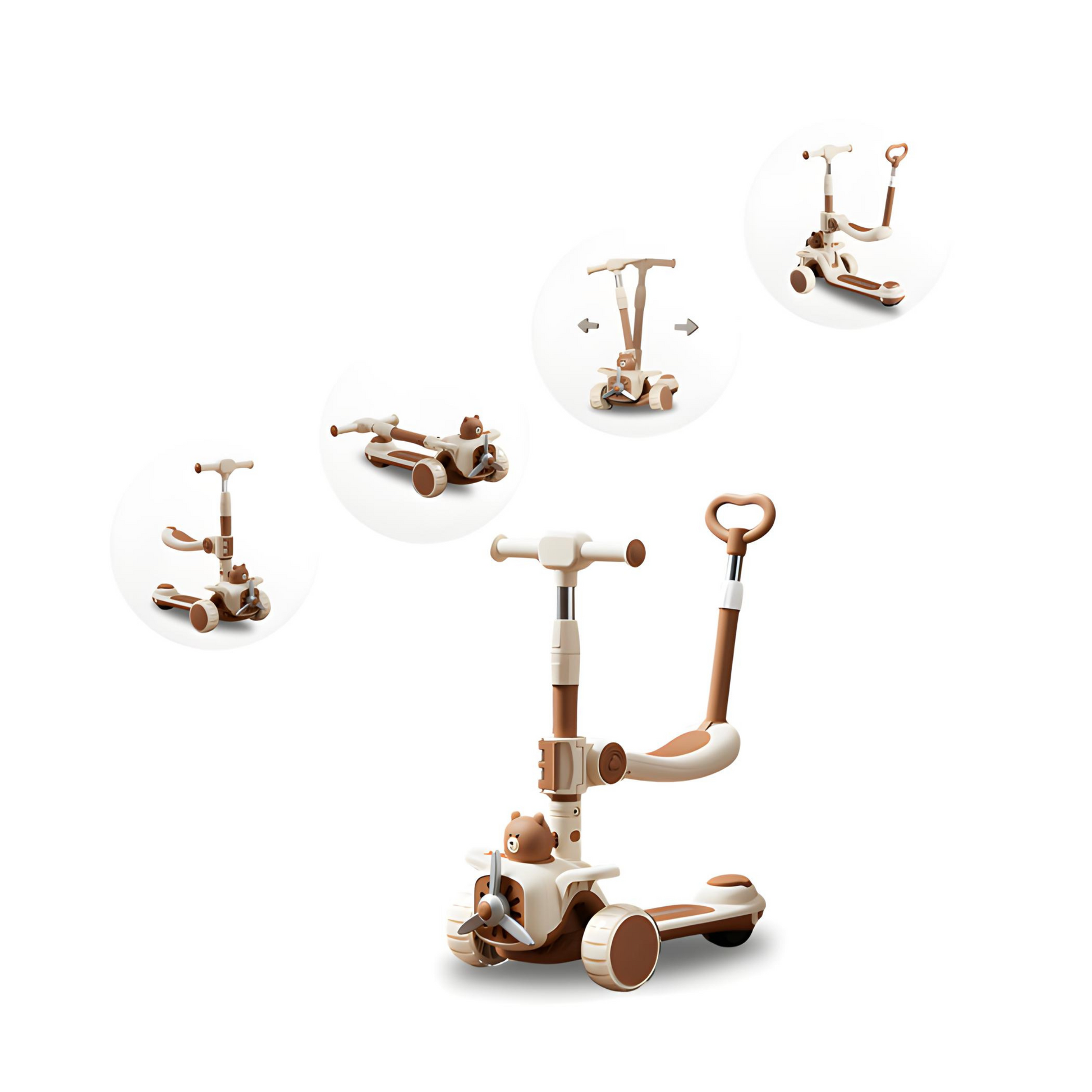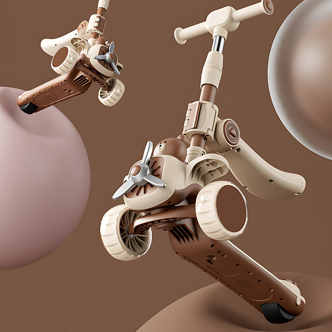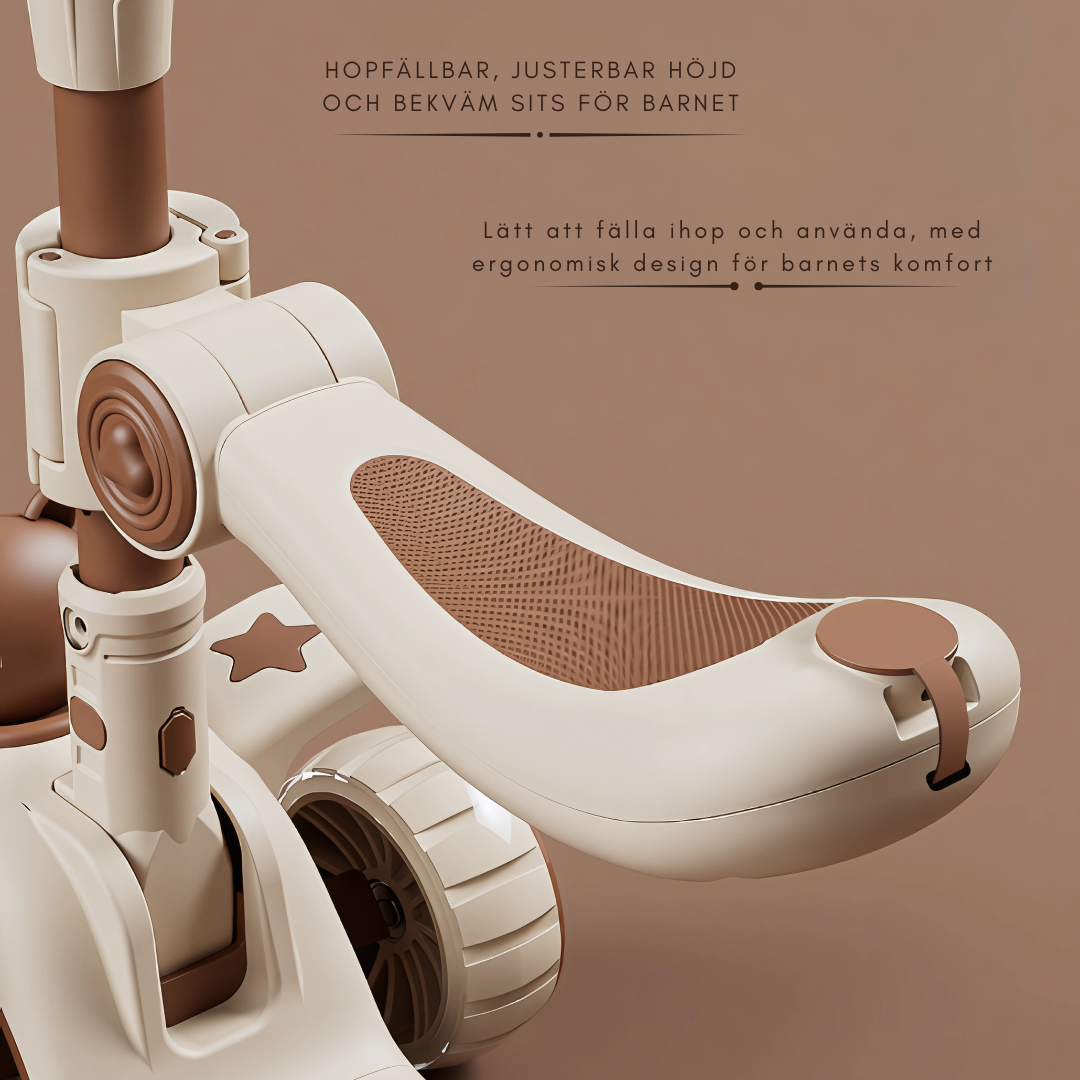 Denna mångsidiga sparkcykel är designat för att växa tillsammans med ditt barn och erbjuder en flexibel lösning anpassad för olika åldrar och utvecklingsfaser. Tack vare sin smarta design kan den enkelt omvandlas till balanscykel, sparkcykel eller styrbar cykel – perfekt för barn mellan 2 och 7 år.