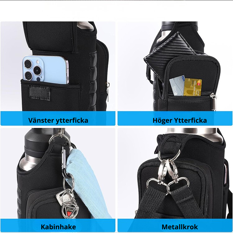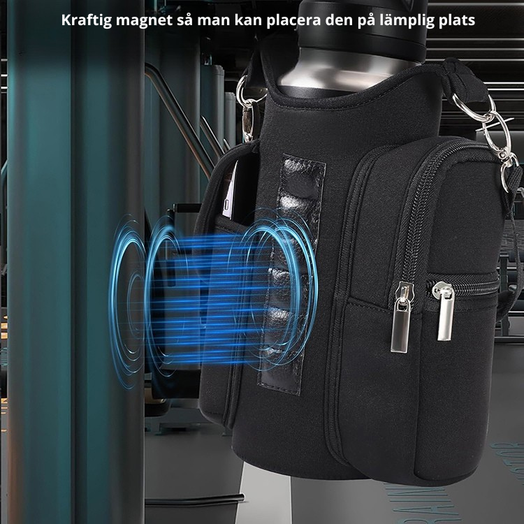Magnetisk vattenflaskväska – smart träningsväska med fickor & axelrem
