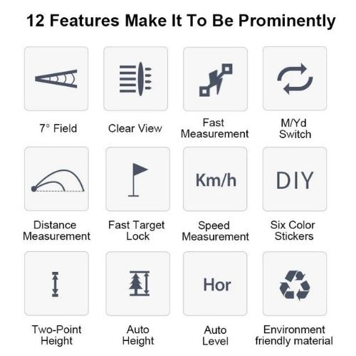 Der kostengünstigste Entfernungsmesser auf dem Markt bietet zuverlässige Leistung für Golf, Jagd, Bogenschießen und andere professionelle Anwendungen. Beide Modelle verfügen über Neigungsfunktionen. Der Neigungsschalter ist turnierzugelassen. Messbereich von 4,5 bis 600 m, mit hoher Genauigkeit von +/- 1 m und 6-facher Vergrößerung. Die Fahnenmast-Arretierungsfunktion unterstützt Entfernungen von bis zu 137 m (nur Fahnenmast) und 237 m (ausgeklappte Fahne). Unser Entfernungsmesser erfüllt die meisten Anforderungen