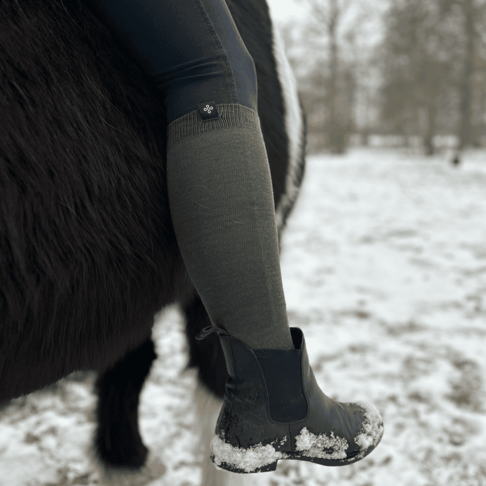 - Finstrumpskänsla! Tack vare den tunna och krusiga merinoullen får strumpan en elegant och närmast glansig yta och kan användas även till andra tillfällen, utanför stallet och ridningen.