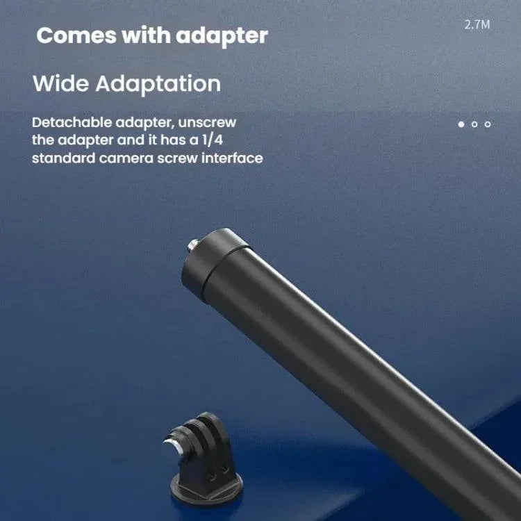 Med en maximal längd på 2,7 meter ger denna selfiepinne dig ett helt nytt sätt att filma – perfekt för panoramabilder, 360°-filmning, gruppfoton och sportscener.