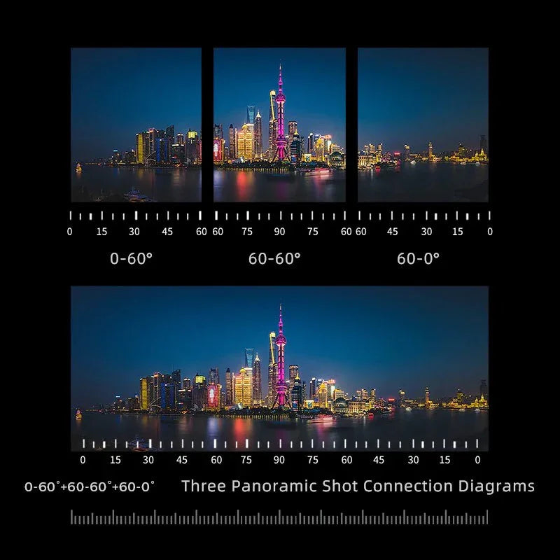 Strax under kamerafästet i toppen finns en graderad 360 skala. Hela ovandelen av kamerafästet går att rotera 360 grader genom att lossa på en tumskruv. Graderingen gör det väldigt enkelt att ta sekvenser av foton i olika grader och sedan klippa dessa till panoramabilder. Utmärkt när du behöver exakta inställningar.