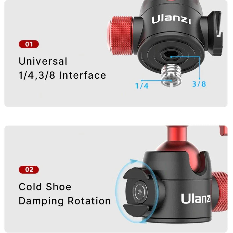 Ulanzi U-70 Kulledsfäste Vlog med tillbehörshållare 360 grader - Aluminium