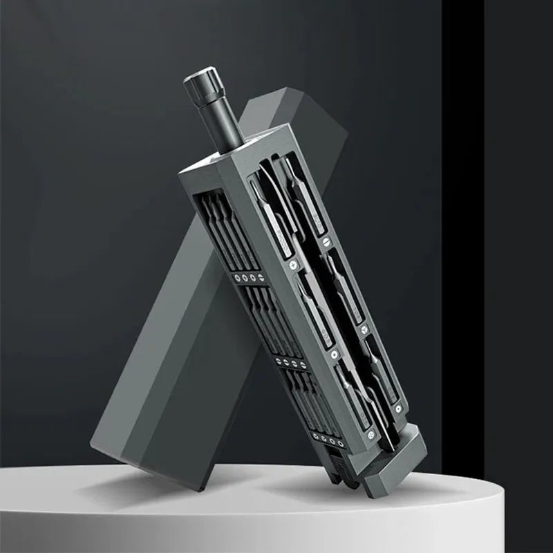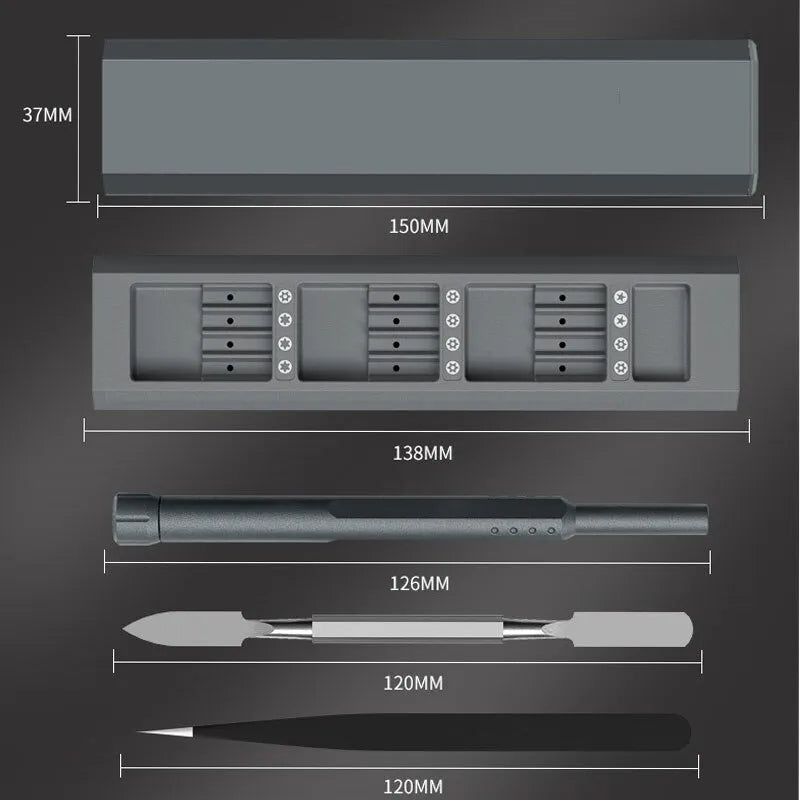This 44 in 1 precision screwdriver set comprises 44 screw bits, including phillips, pentalobe, torx, hex, slotted, triangle, square, and more. It's the ideal toolset for repairing Electronics, Laptops, Phones, PCs, Watches, Tablets, Glasses, Cameras, Toys, Models, and other devices. Constructed from top-notch S2 steel, this screwdriver set is stronger and more durable than standard CR-V alloy. Each bit is magnetic, ensuring small parts remain attached and making tasks more convenient. Designed for user convenience, each screwdriver is comfortable to hold, anti-slip, and comes in a stylish metal box. Just press the "OPEN" button to slide out the interior and access all bits, neatly organized in their secured compartments. The set features a compact storage design, allowing you to effortlessly place it in a tool bag or pocket. With consistent placement and size for the accessories, parts remain secure, enhancing your efficiency. Your satisfaction is our utmost priority. Should you encounter any issues, please contact us for a 100% satisfactory after-sales service experience.