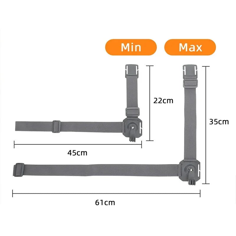 Längderna på de två remmarna (en som går runt huvudet och en som går över huvudet) går att justera från 45-61cm samt 22-35cm.