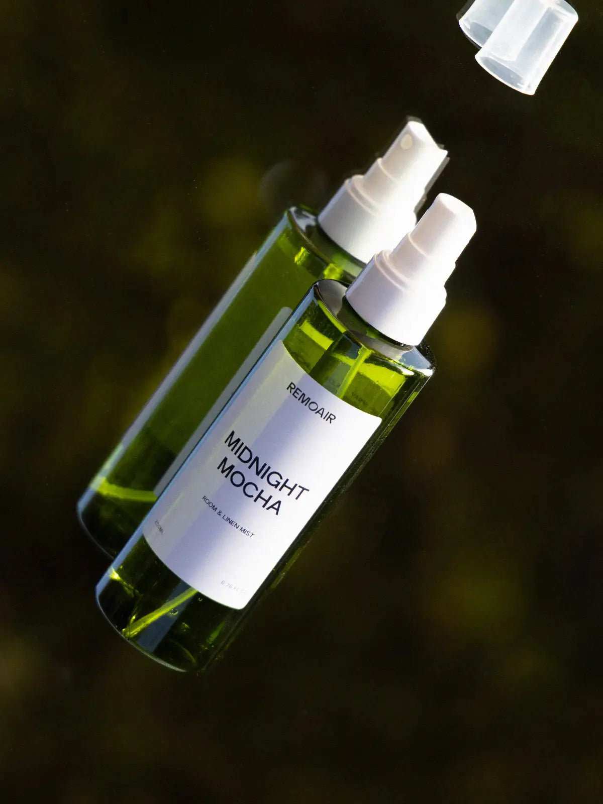 Veganska och miljövänliga doftspray som skapar en djup och inbjudande atmosfär.
