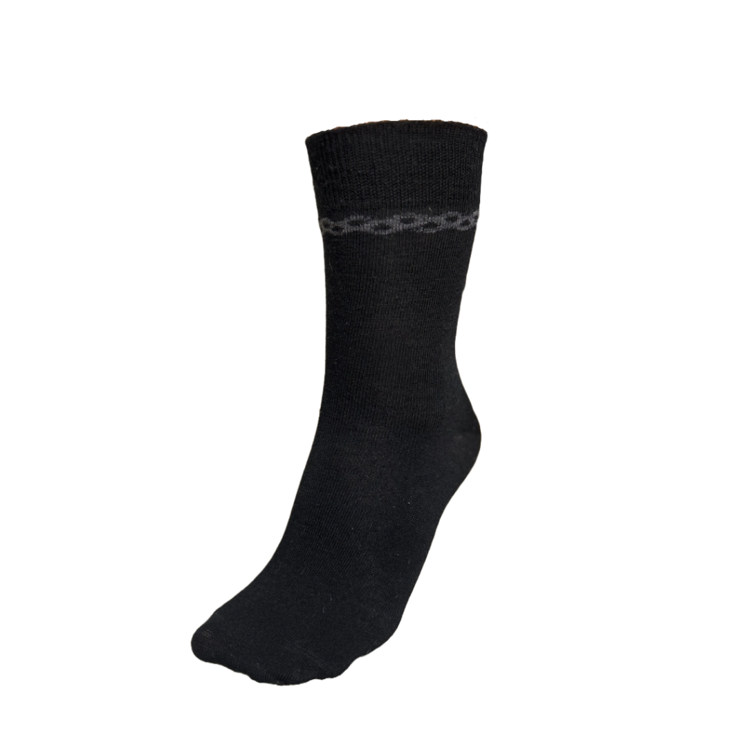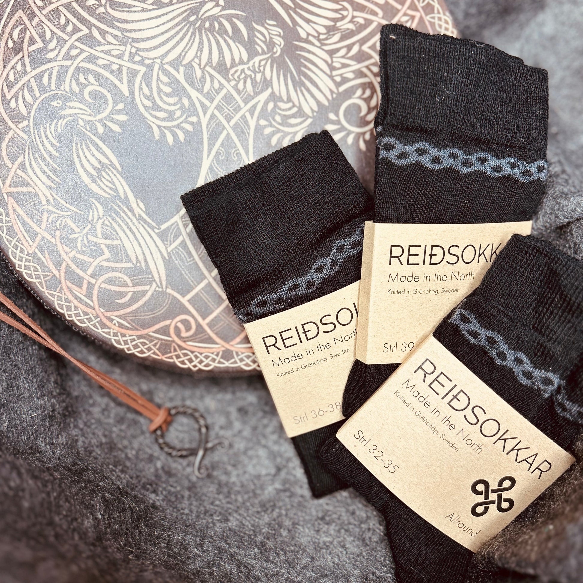 Upptäck kraften i våra nya Reidsokkar Mjölnir, en stilren ridstrumpa i svart designad för lägre ridstövlar och jodhpurs. Med hela 75% mulesingfri merinoull kombinerar denna strumpa hög komfort och funktionalitet, samtidigt som den bär med sig en symbolisk koppling till fornnordisk mytologi.