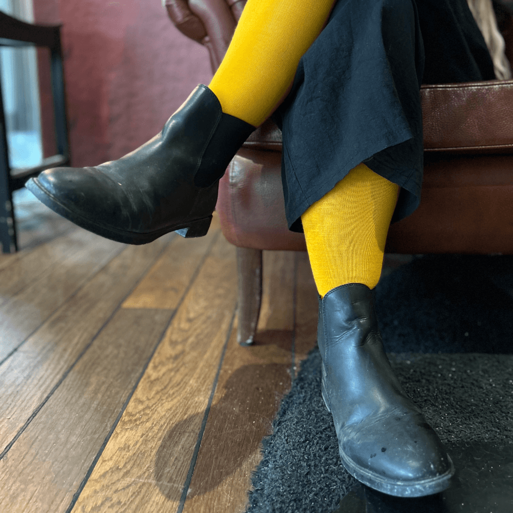 Reidsokkar Allround Sunna, ridstrumpa i färgen gul. Tillverkade i unikt hög andel mulesingfri merinoull, hela 75%, erbjuder dessa strumpor hög komfort och prestanda för varje ridtur och arbetspass i stallet.