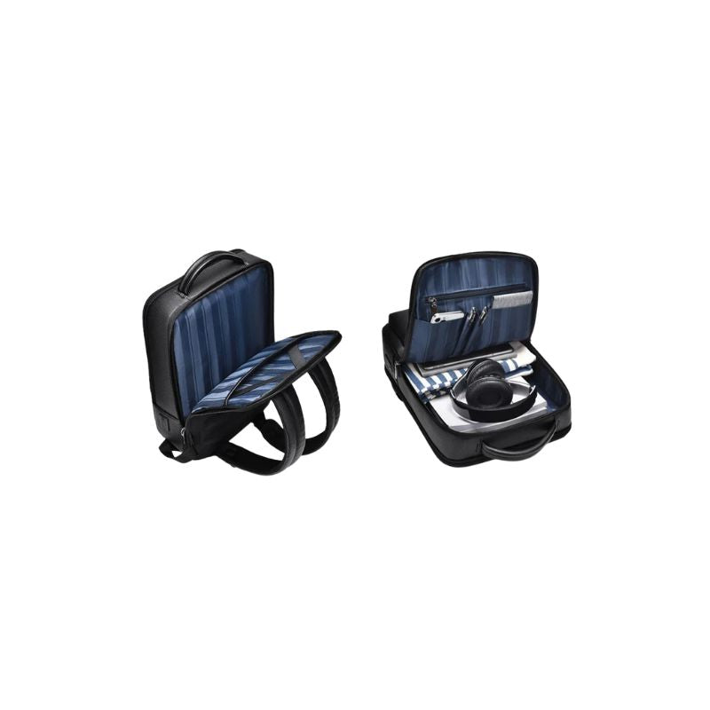 Invändigt hittar du ett smart organiserat facksystem som rymmer laptop, surfplatta, dokument och tillbehör – allt säkert och lättillgängligt. De vadderade axelremmarna ger hög bärkomfort hela dagen, medan USB-porten på sidan gör det enkelt att ladda mobilen på språng. Baksidan är anpassad för att fästas på resväskans draghandtag – en perfekt följeslagare för affärsresenärer.