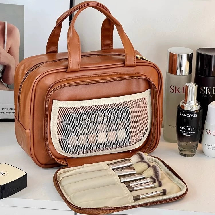 Sminkväska med borsthållare – Rymlig necessär med smart förvaring